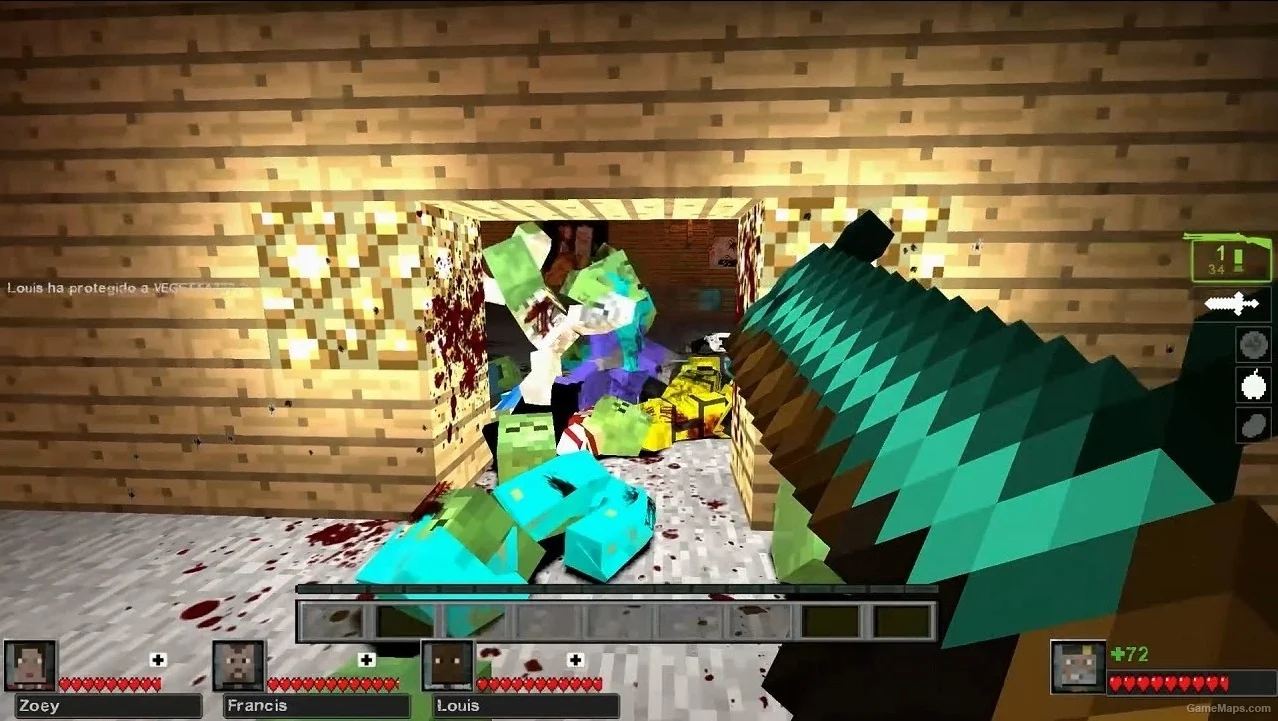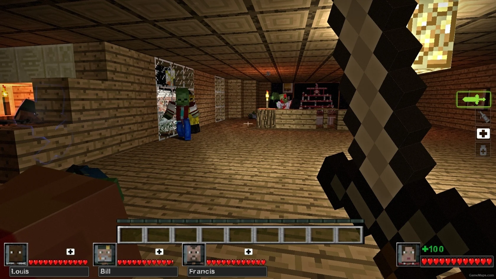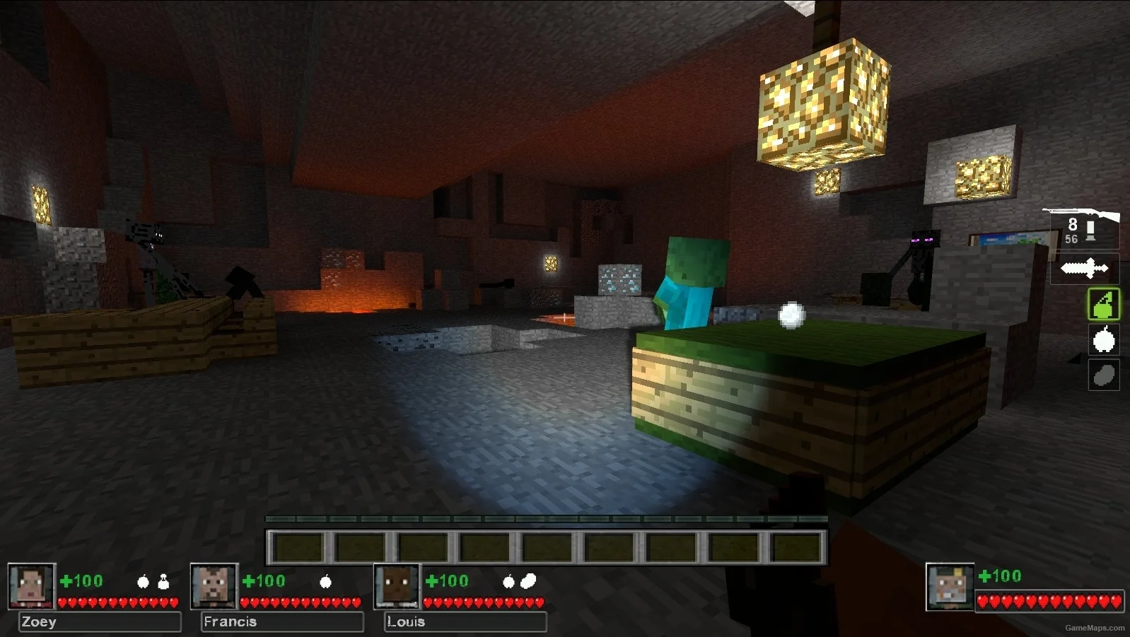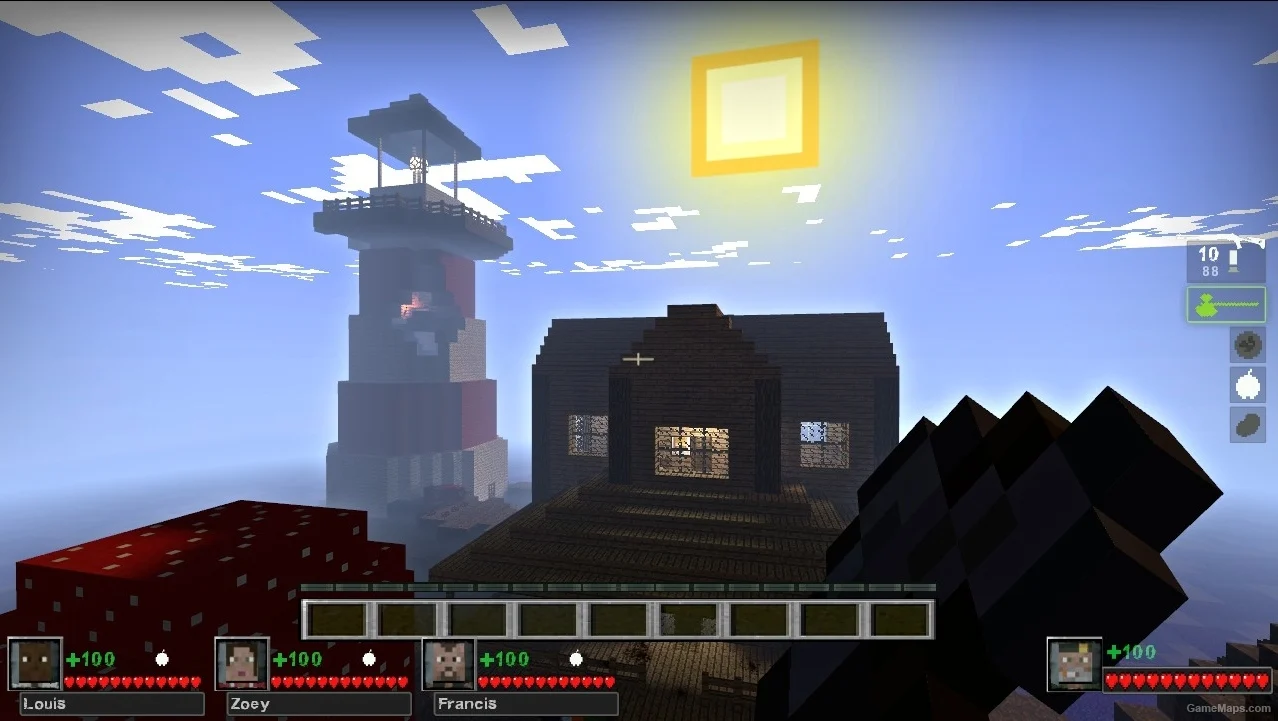 整张地图难度较大,一方面基于作者将所有特感及幸存者全部变成《我的世界》中的怪物及人物,所以黑枪的几率会很大,同时整张地图尸潮频率及刷怪频率都很高,是一张难度较高的地图,当然独特的场景设计也十分推荐大家游玩这张地图哦!