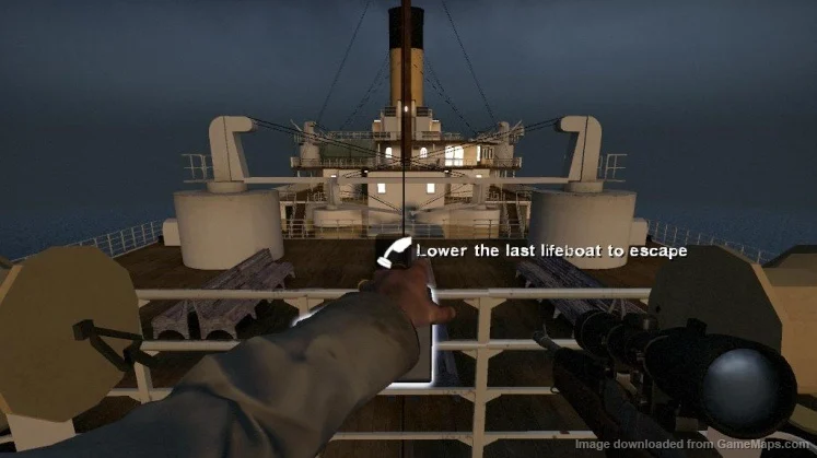 《泰坦尼克号》是一张由国外作者Petter Hesse (Diputs)制作的4个章节的战役、对抗、生存地图,《泰坦尼克号》是一款典型的fans向地图,以还原电影中的重要场景为卖点。玩家们需要从自己的船舱出发,一路逃生直到顶层甲板登上救生艇获得救援。