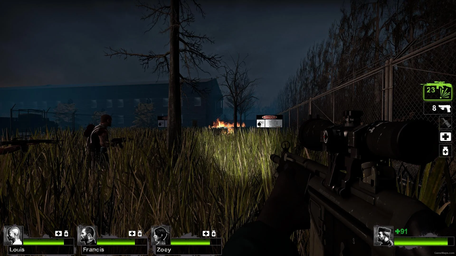 《恶臭熏天》是一张由国外作者Ron(goanna)Fancher制作的4个章节的战役地图,地图虽建模一般,但作者却营造了一个完整的故事情节。寂静的夜晚,随着不断的前行,幸存者们发现一处秘密的生化实验室,恶臭的源头就是这里,不仅要面对无尽的丧尸来袭,还必须时刻小心被毒气感染。