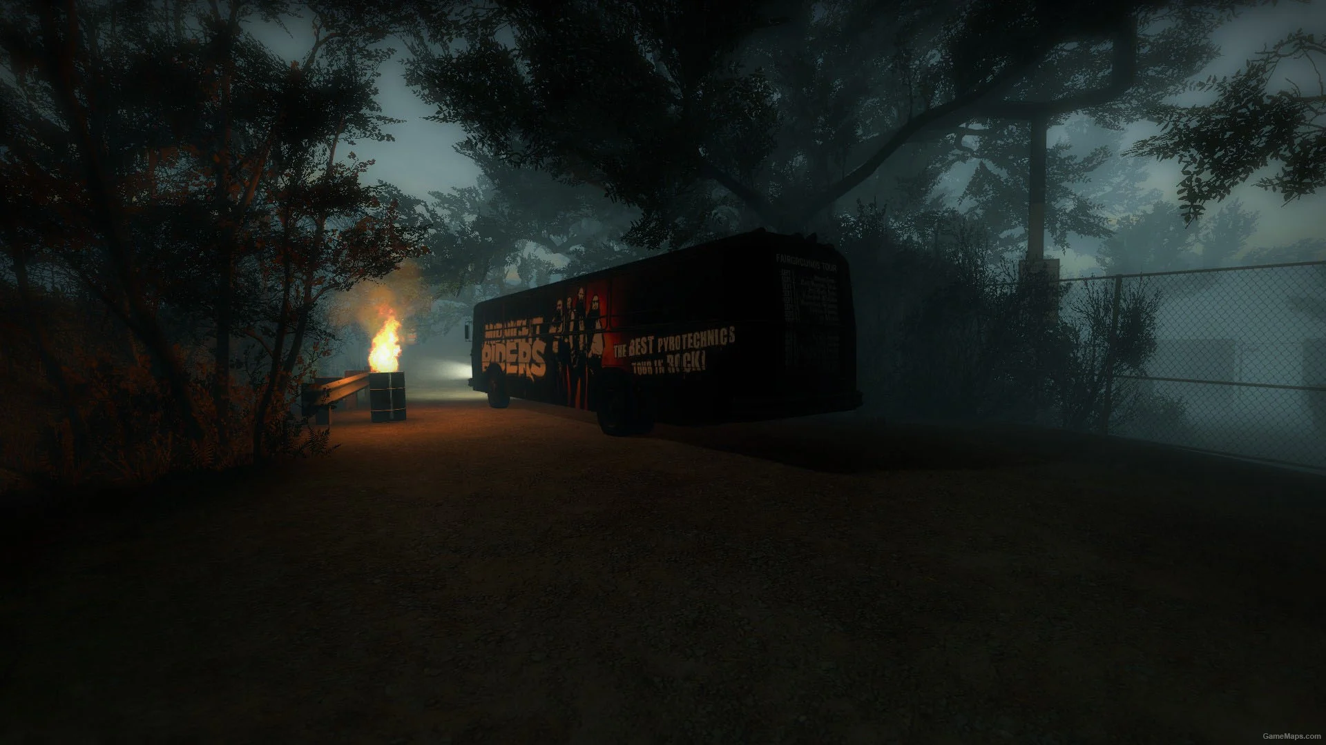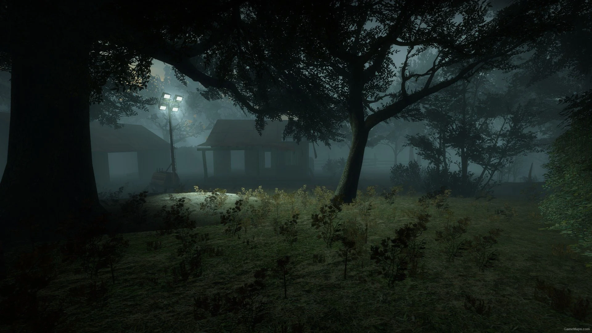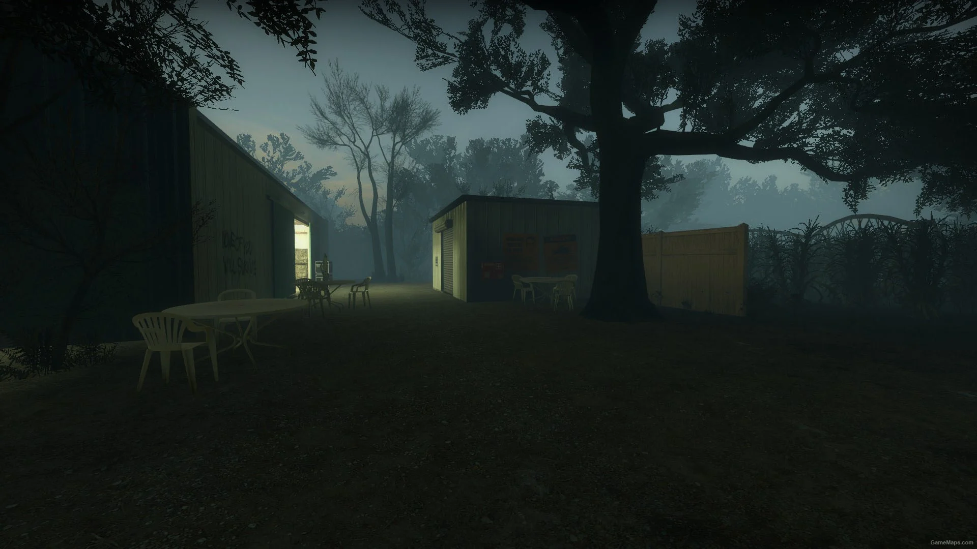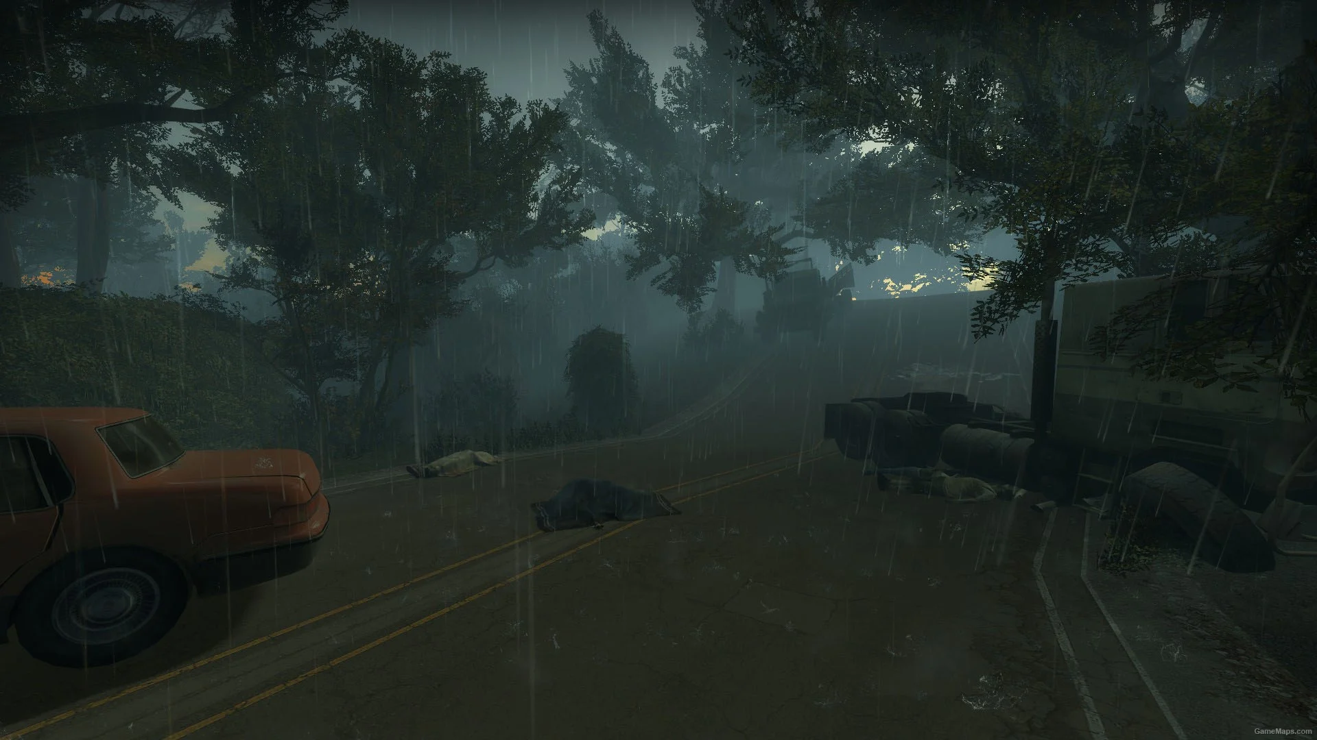 本图的大多数场景都设置在野外,对于玩腻了城市关卡的朋友们来说无疑是一个福音。作者对外界自然环境的刻画非常细致,浓密的树林与灌木丛颇具真实感,玩起来有些像官方战役的沼泽激战。整体色调非常阴暗,数量众多的岔路与开放式场景也极大地延缓了玩家的行进速度,尸潮数量巨大,玩家稍有不慎就会落入被包围的境地。