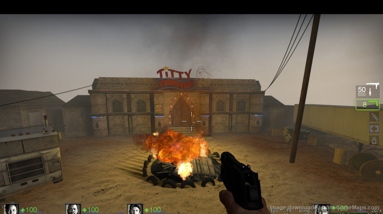 《乳摇酒吧》是一张由国外作者Boing制作的2个章节的战役地图,地图还原了电影的经典场景。明媚的阳光..一行四人驱车来到墨西哥边境的小镇,一辆擦肩而过的黑色的午夜骑士的豪华大巴向另一个方向驶过。由于汽油耗尽,幸存者不得不在这前不着村后不着店的荒漠中的公路中转站停,并找到救援逃离这里!