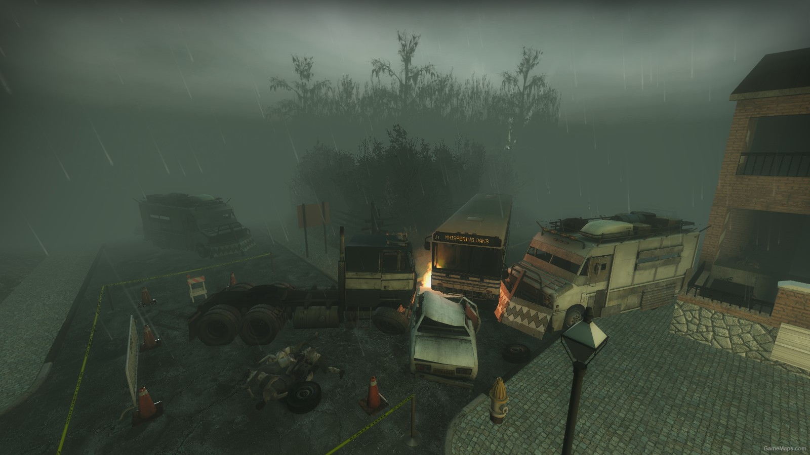 《城市灾难重制版》是一张由国外作者[GoD] Koukin_Shuuyu制作的5个章节的战役地图,这是神一级的非官方图,该图各种环境,天气非常丰富,有阳光明媚塞满汽车的公路,也有空无一人暴雨肆虐的小镇,有开阔的广场和购物中心,也有狭窄的林间墓地小道,并且难度适中,补给丰富,但这些都不是该图晋级“神一级”的真正原因,真正的原因是:这是小编玩过的所有官方图中最长的一张图!太长了,简直是又臭又长,这个图从头到尾粗略的玩上一次,即使开作弊,也得至少3小时,足够把玩家的耐心消耗殆尽,小编每次玩这个图都要下很大的决心。