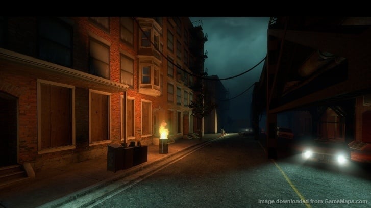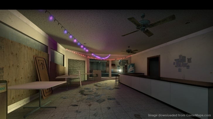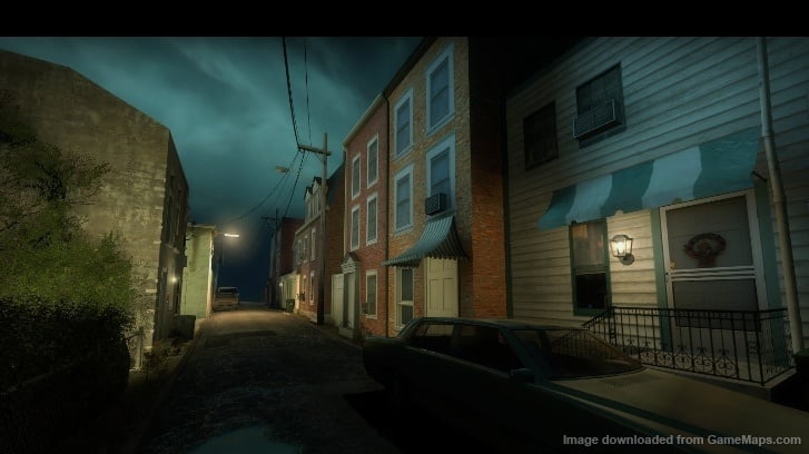 地图的时间点发生在夜晚,一代的四位幸存者们需要从一个郊区的别墅出发,一路途经小巷,街区以及疏散中心,最终来到某个社区公园乘坐直升机逃离,整张地图充满了欧美小镇的风情。