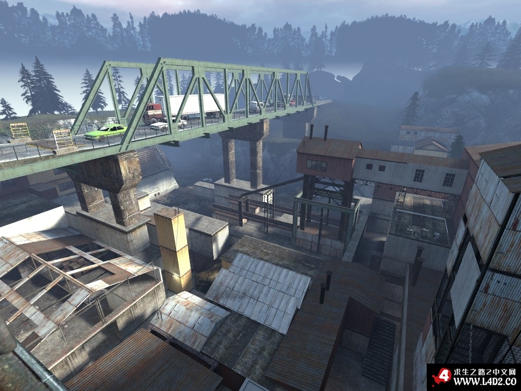 一张高品质地图作品,强烈的代入感往往是衡量的第一标准,而作者对代入感的体现更是达到了身临其境的最高境界。地图不仅场景大气,建模精致,更融入了许多细节元素,如正在啃食尸体的乌鸦群,因常年见不到活物而长满蘑菇的坦克等。此时正直响午,天气晴朗,阳光明媚,峡谷绿树环绕,开阔的场景不免让人心旷神怡,如果没有这些恼人的丧尸,或许更像是来旅游的吧……