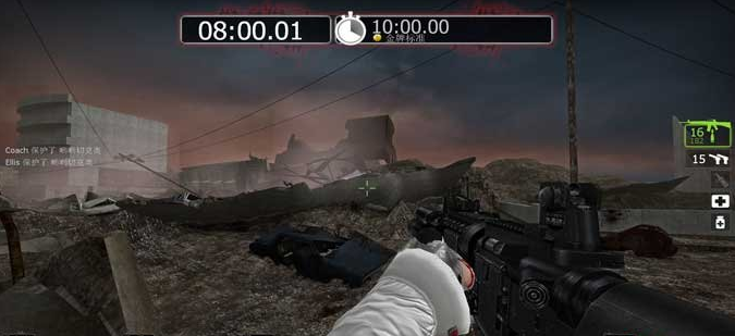 幸存者们出生在一个类似中东地区的荒废建筑群中,值得庆幸的是人类幸存者并非只有4位游戏主角,一代的四位人物以及其他幸存下来的人类也会帮忙防守,他们的火力已经完全可以对抗尸潮,只需躲在他们身后即可轻松坚持下来。