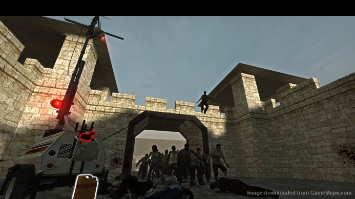 《城堡大屠杀V2》是一张由国外作者cr0coDiL制作的1个章节的战役、生存地图,这张地图的难度非常高,玩家需要收集20罐汽油来给发电机充能,随着油罐的逐渐增加,地图的难度也跟着提升,后期简直达到令人发指的地步。城堡周围可建造障碍物来阻挡丧尸的步伐,建议在前期尸潮较少的情况下尽量增加建筑物,否则后期只有哭的哦!