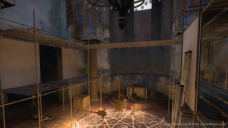 《最后一个修道院》是一张由国外作者Mapeater制作的1个章节的生存地图,整个地图的场景非常小,一个不大的房间外加一个可以攀爬的简易装修架。激昂的背景音乐或许才是该图的亮点所在,它将使你战斗力暴增。场景是在一个正在修缮的教堂内,地上有一个魔法阵,玩家需要点亮蜡烛来开启它,当玩家开启魔法阵与魔法书之后,游戏正式开始,无尽的丧尸与坦克将从天而降,需要的玩家不要错过哦!
