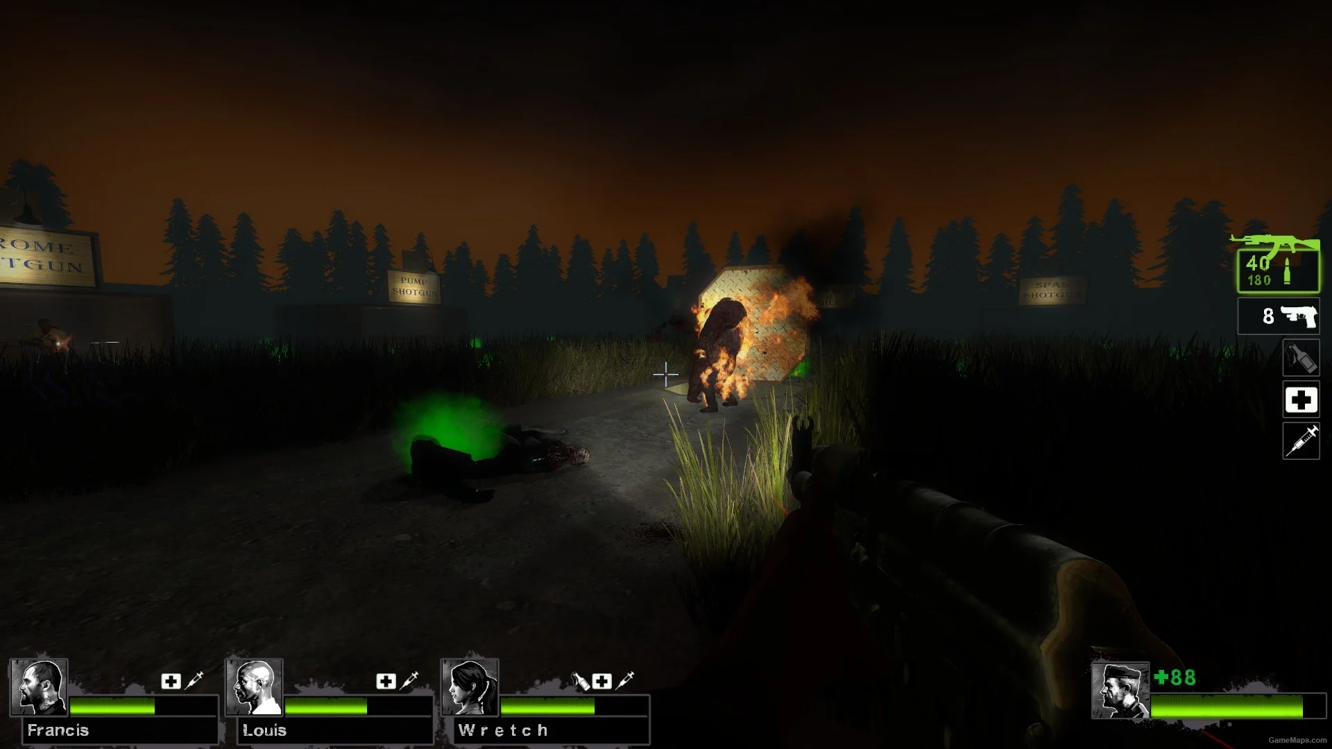 《坦克大本营》是一张由国外作者goanna制作的6个章节的战役地图,是一张以恶搞恶趣味为主题的地图,与大批僵尸战斗时,在成堆的坦克粪便中导航......踩到坦克屎你就会掉1滴血,地图整体玩法还是很有趣的,这图重点就是坦克多,一次刷好几只,补给充足,多人玩挺刺激的,推荐大家游玩哦!