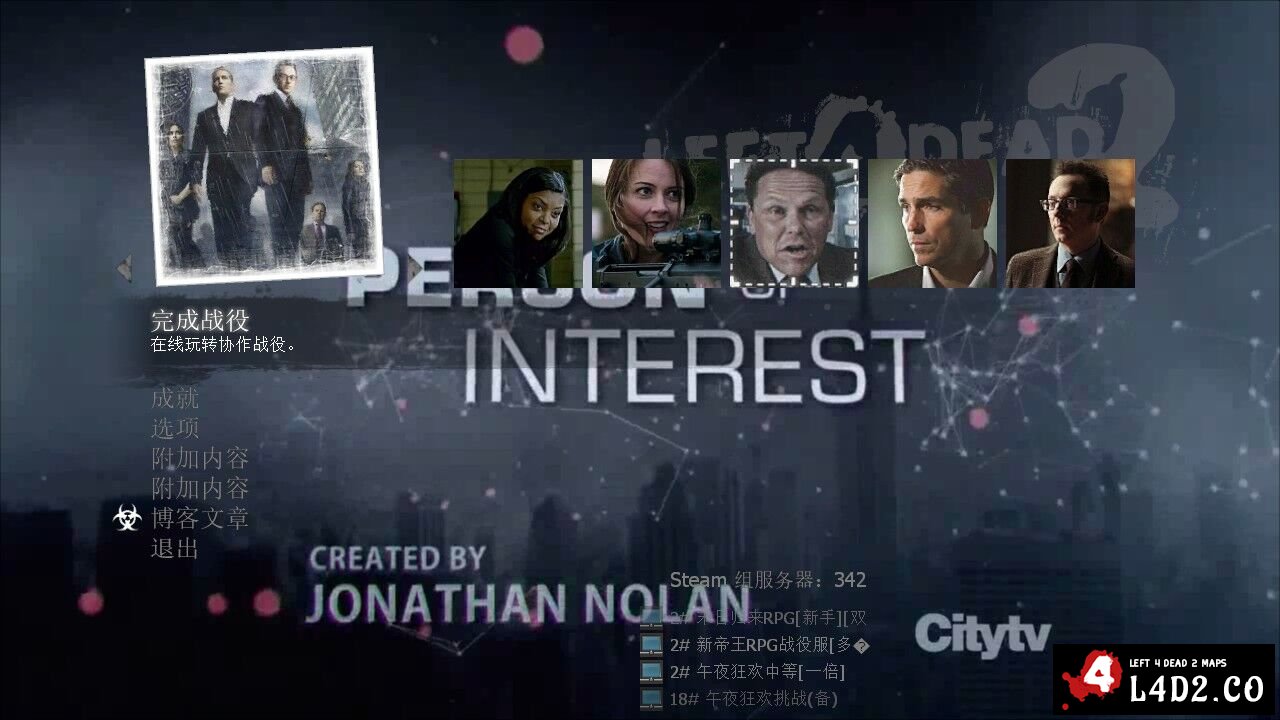 小编寄语:这是一个非常不错的菜单背景推荐给喜欢《疑犯追踪》电视剧的玩家们体验哦~作者声明:MOD仅上传于l4d2.co,请勿转载