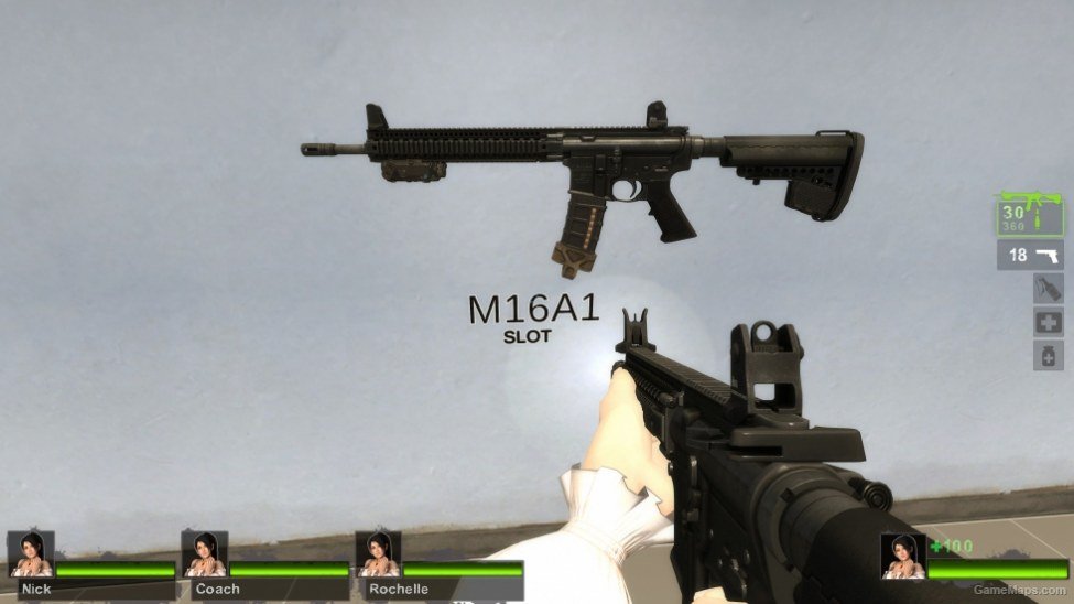 Mod介绍:这是一个替换了求生之路2默认的M16中的枪模型,这个枪械模型包含了声音,持枪动作和hud图标也进行了替换,是一个非常不错的枪械模型,推荐大家哦!